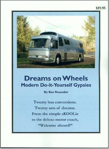 Dreams on Wheels: Modern Do-it-Yourself Gypsies by Ben Rosander is 101 Pages and includes well over 200 photos, drawings and floor plans. The twenty buses featured in this book were home-converted by individual owners. Some converters wrote lengthy, often funny accounts of their experience, while others chose to let the photos speak for themselves and all I did was add a few captions. Buses include sKOOLies, "StratoCruisers," a rolling burrito stand and a mobile machine shop. An excellent book for those tired of the cookie-cutter conventional RVs. The open road is waiting. Are you ready?From reader reviews: